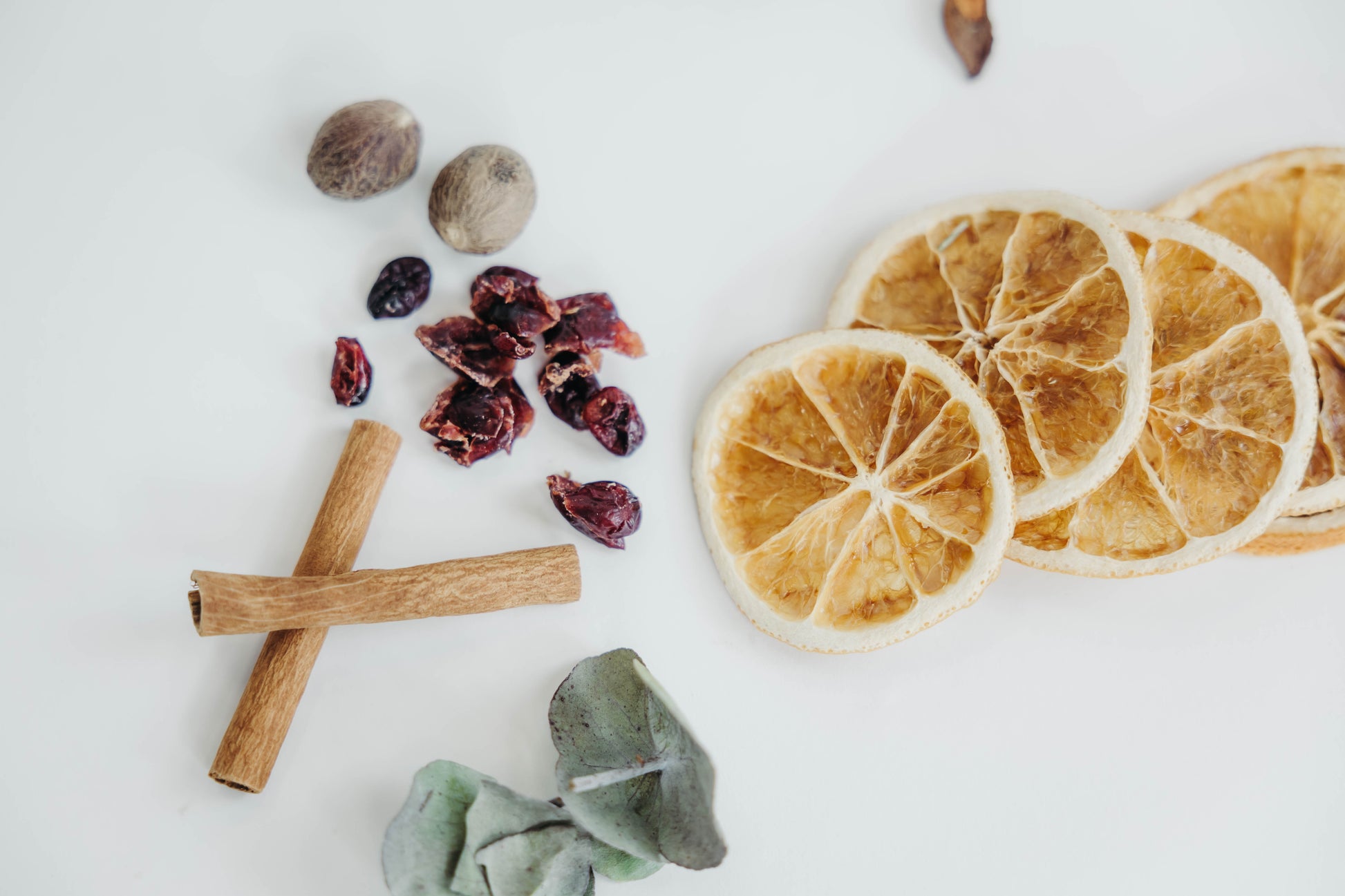 Your house will be smelling festive with dried oranges, eucalyptus, nutmeg, cinnamon, star anise, whole cloves, and cranberries.
